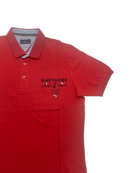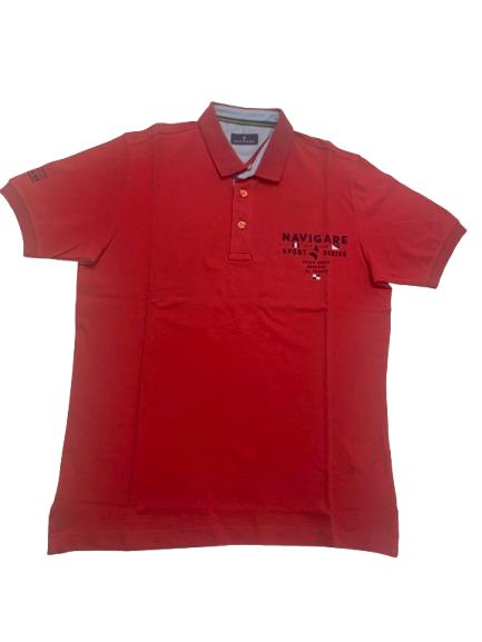 Polo uomo Navigare in piquet di cotone mezza manica con logo e iscrizione altezza cuore collo camicia e spacchetti laterali sul fondo