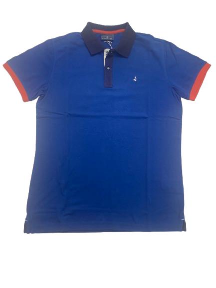 Polo uomo Navigare mezza manica tinta unita in cotone piquet con colletto a contrasto logo altezza cuore e spacchetti laterali sul fondo