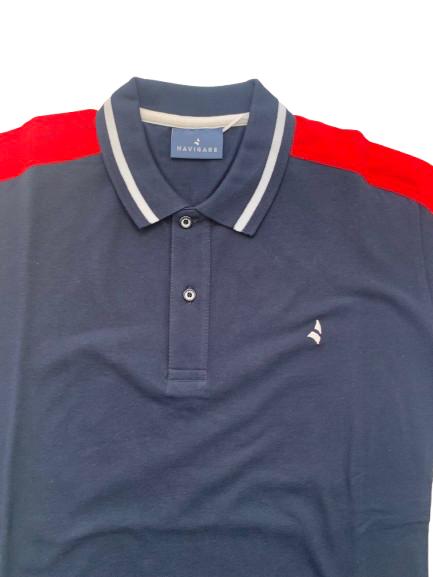 Polo uomo Navigare in cotone piquet mezza manica con intarsi a contrasto logo altezza cuore e spacchetti laterali sul fondo
