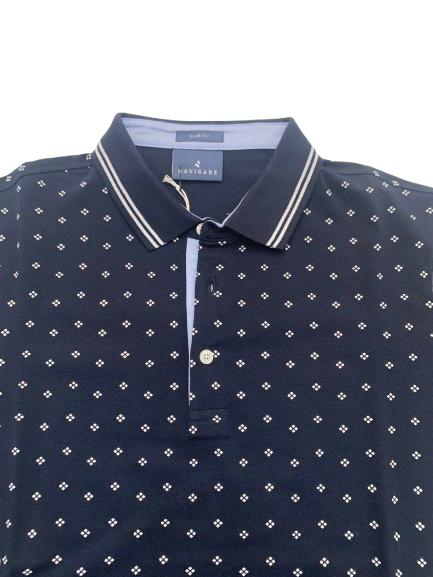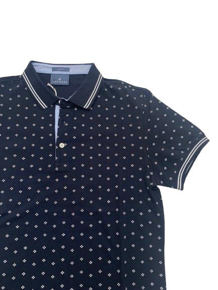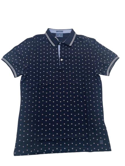 Polo uomo Navigare in piquet di cotone mezza manica con collo camicia logo sul fondo e tessuto micro-fantasia a rombi linea Slim Fit