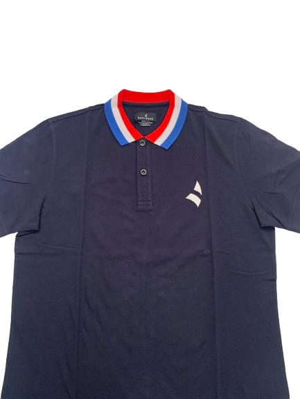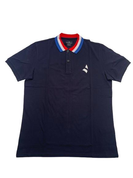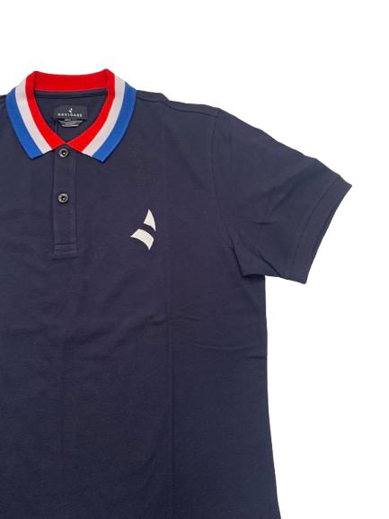 Polo uomo Navigare in cotone piquet mezza manica con collo a contrasto rigato e logo vela bianco