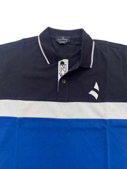 Polo uomo Navigare cotone piquet mezza manica con intarsi di colore a contrasto e logo altezza cuore spacchetti laterali sul fondo
