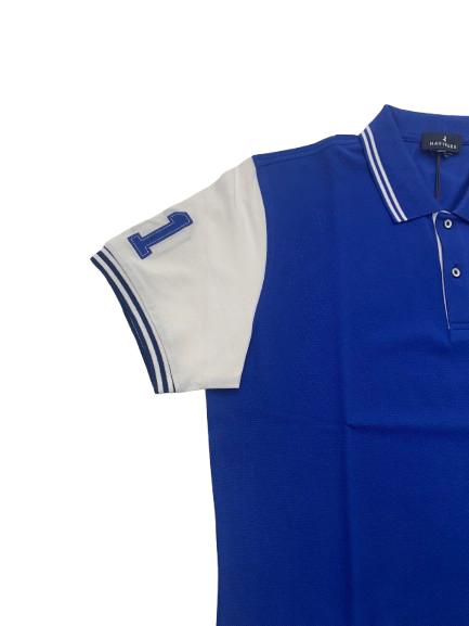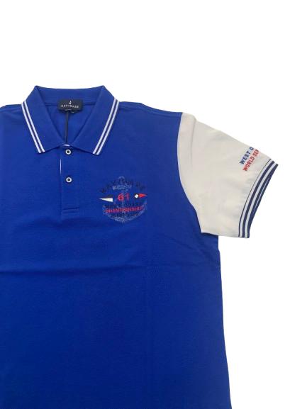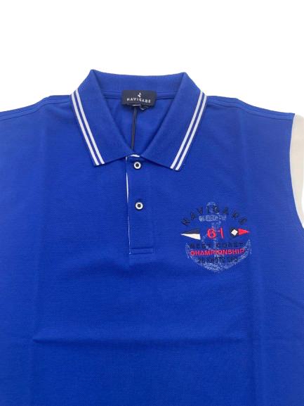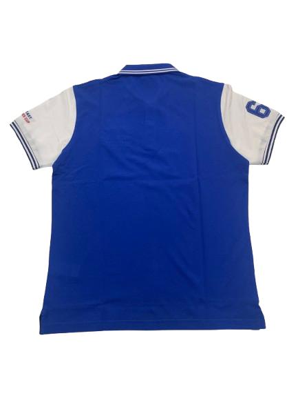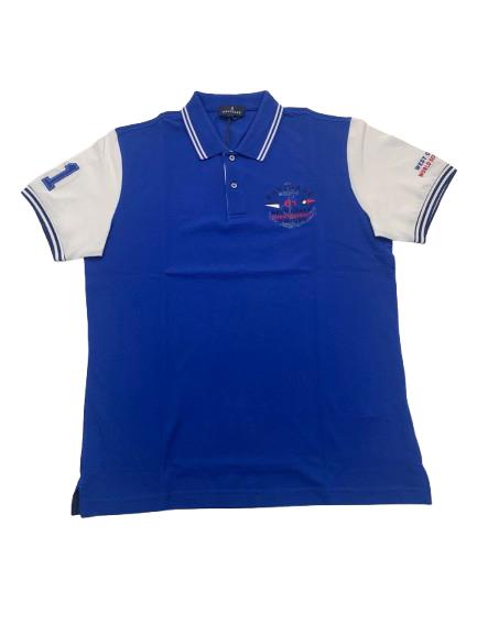 Polo uomo Navigare in piquet di cotone mezza manica con intarsio sul collo logo e bandierine altezza cuore e maniche in bianco con applicazione