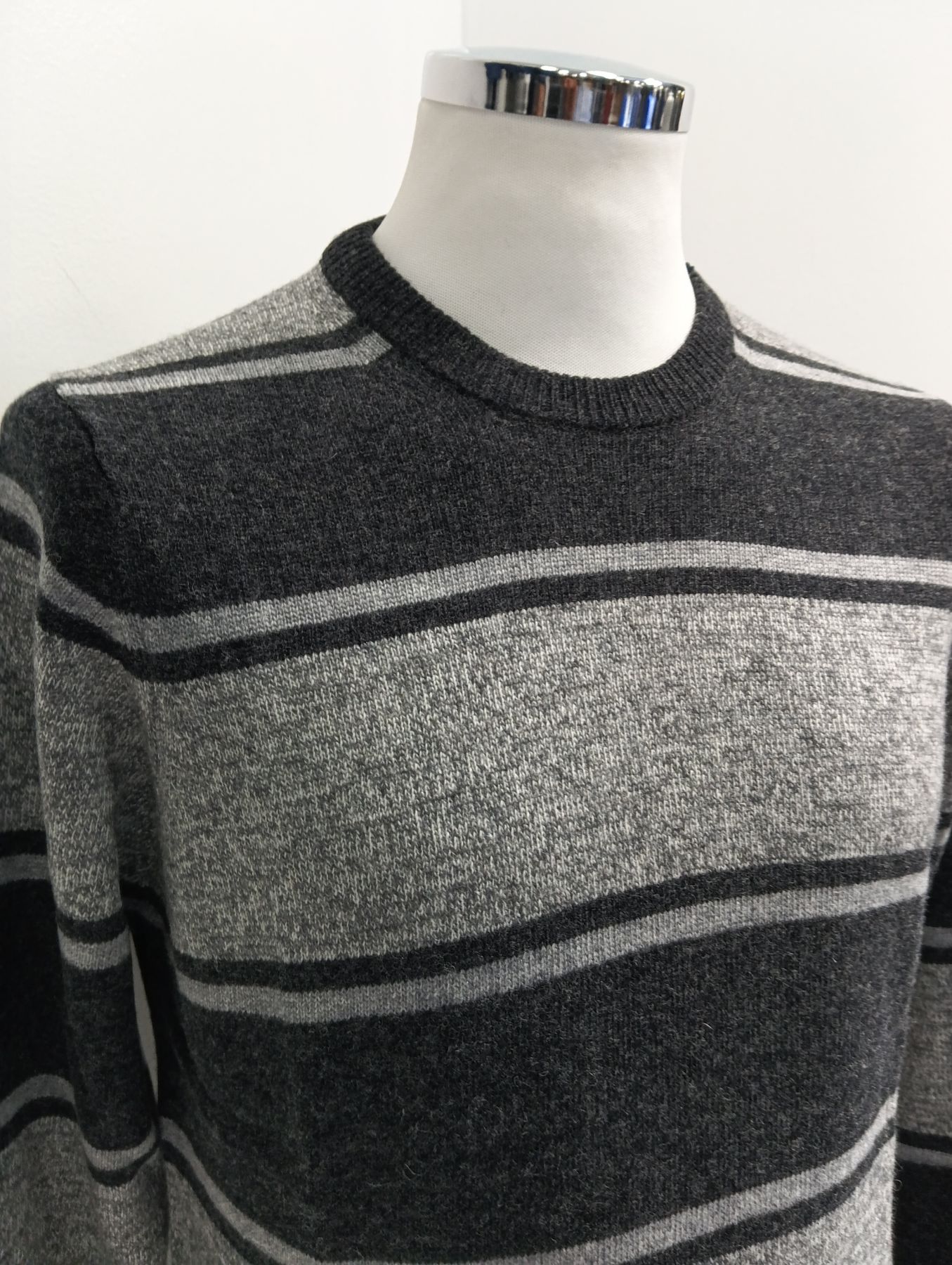 Maglione uomo girocollo in lana 80% con fasce di diverso colore e logo