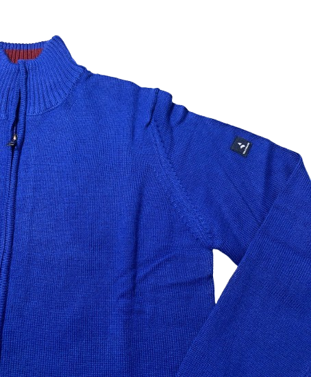 Cardigan uomo Navigare in lana merinos chiusura con doppia zip collo alto con interno a contrasto con logo sul braccio