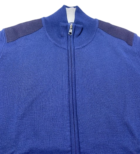 Cardigan uomo Navigare in lana merinos con logo sul braccio in rilievo tessuto doppiato intarsio in pile sulle spalle e interno collo a contrasto