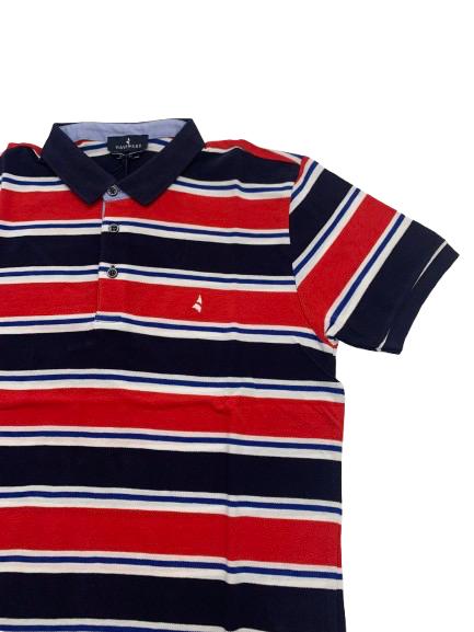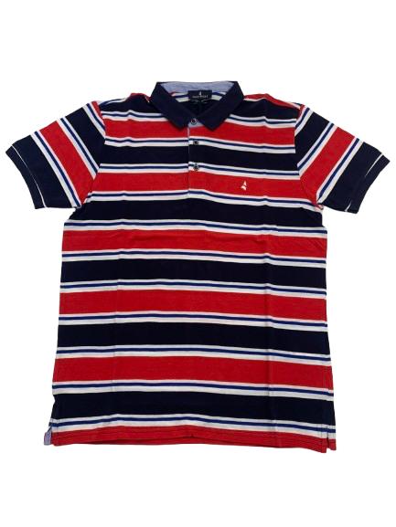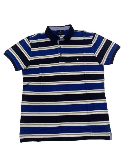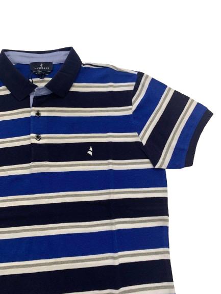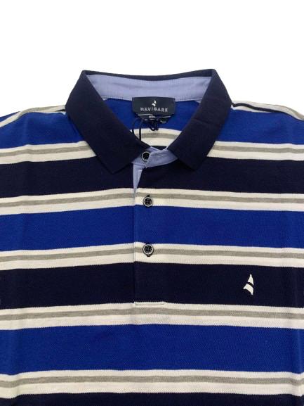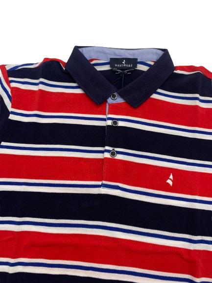 Polo uomo Navigare in piquet di cotone mezza manica fantasia a righe collo tinta unita interno collo e asole a camicia logo altezza cuore e spacchetti laterali sul fondo