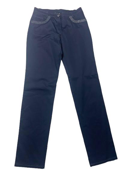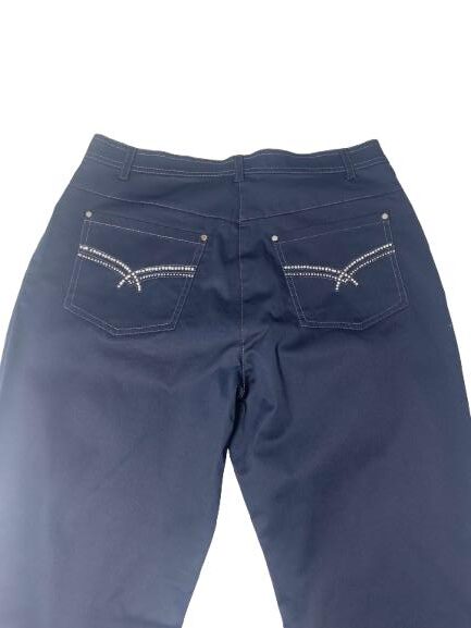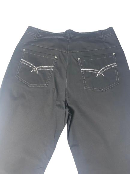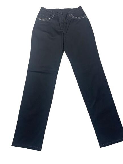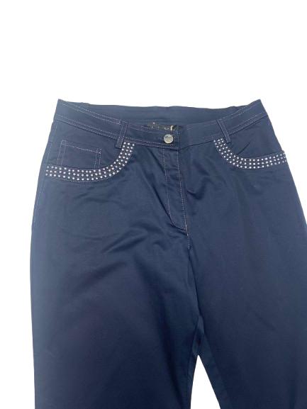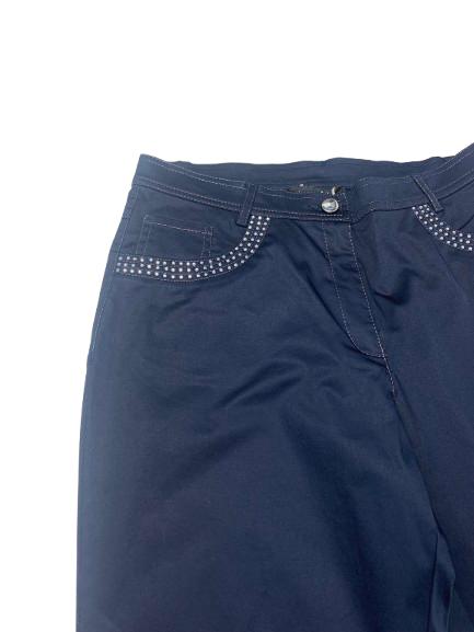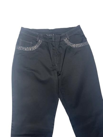Pantalone donna Luisa Viola in cotone stretch con bustino e chiusura bottone e cerniera cuciture in lurex e strass sia sulle tasche anteriori che posteriori passanti sul cinturino