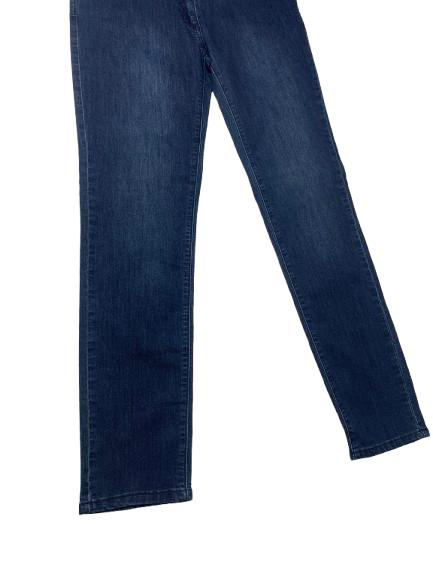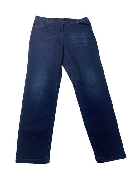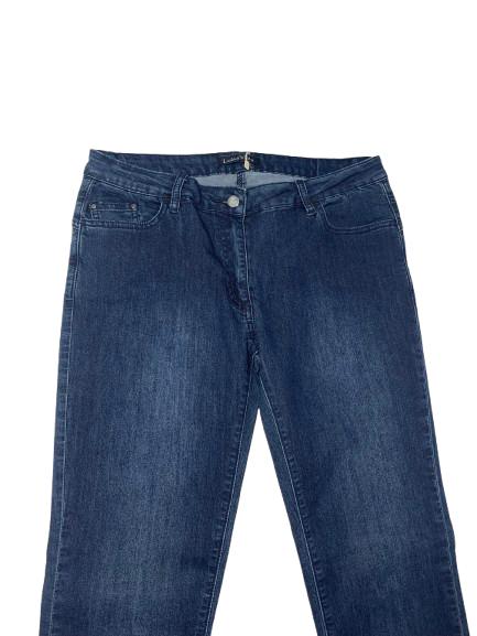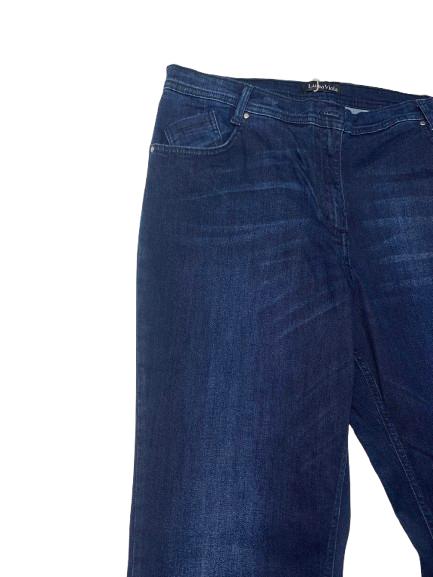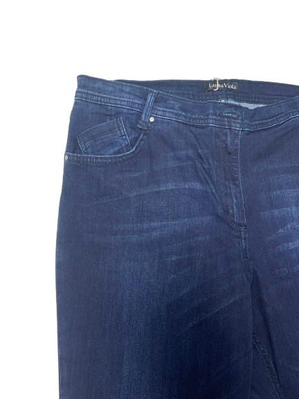 Pantalone donna Luisa Viola in jeans di cotone stretch modello 5 tasche lavaggio scuro con sabbiatura e smerigliatura linea dritta