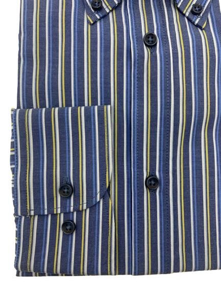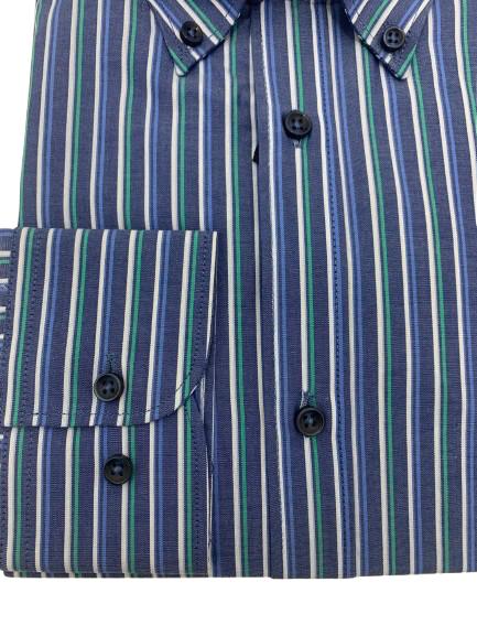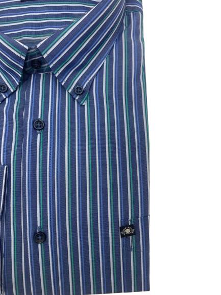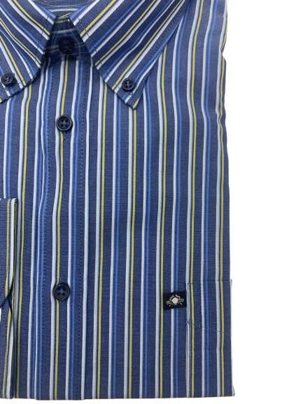 Camicia uomo manica lunga in cotone color denim riga a contrasto collo Button-Down