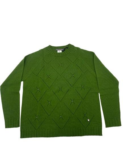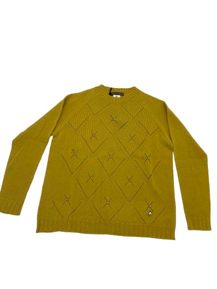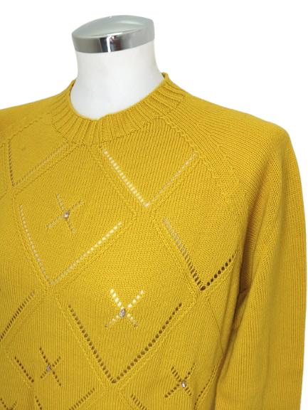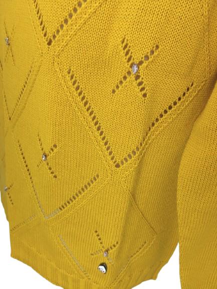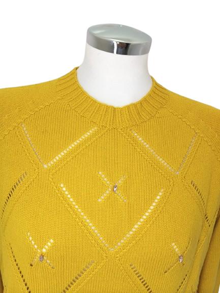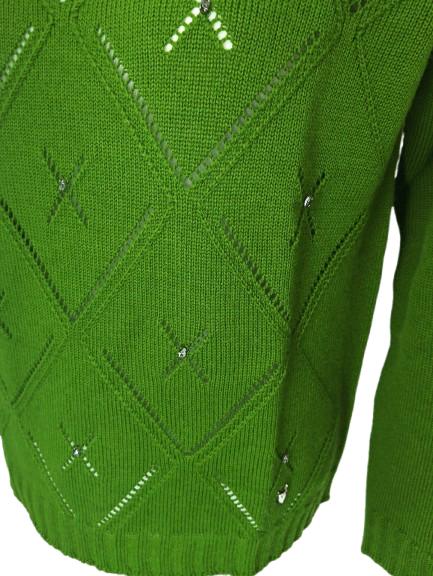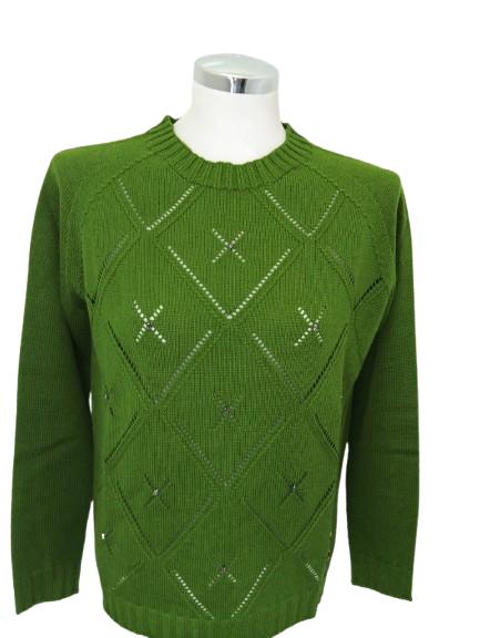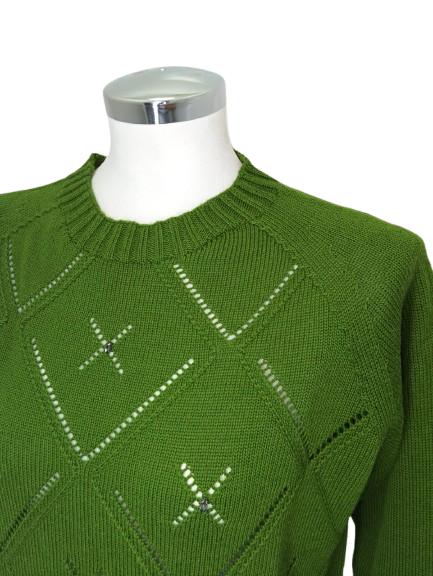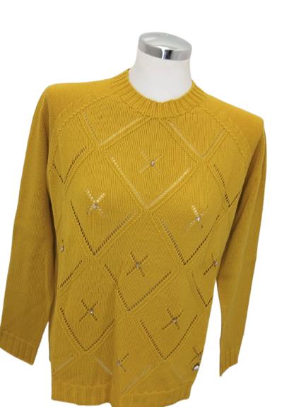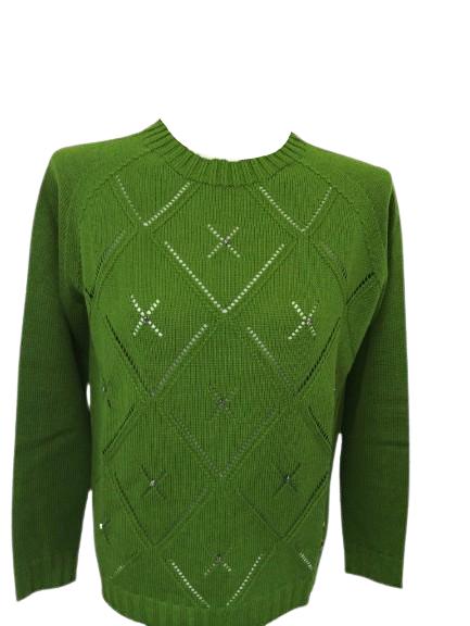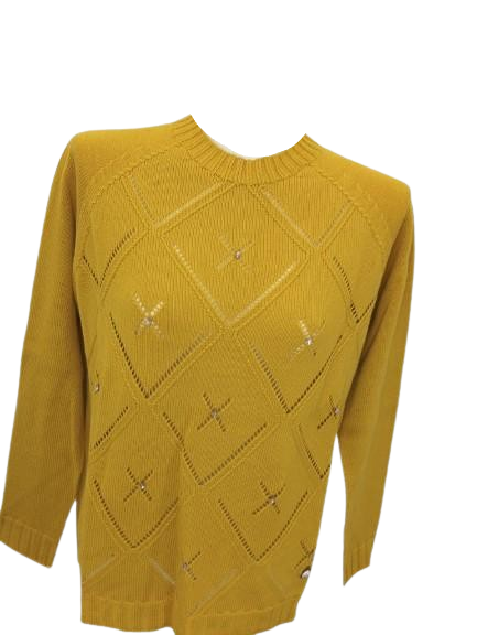 Maglione donna girocollo traforato misto lana con pietre di decorazione
