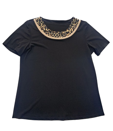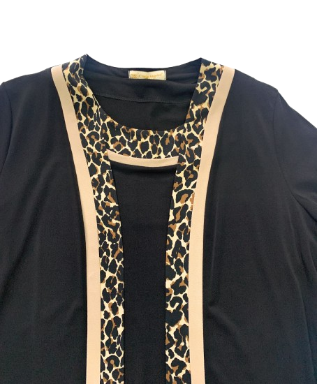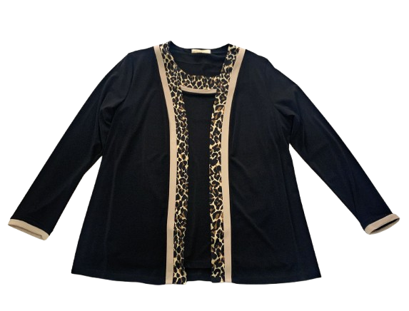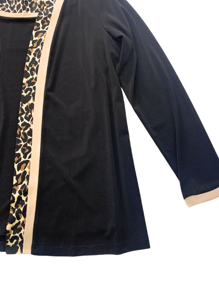 TW147806 TWIN SET DONNA CLARIN SHAVIEN CON PROFILO ANIMALIER GIACCA SENZA CHIUSURA MAGLIA SOTTO MEZZA MANICA CON PROFILO SULLO SCOLLO