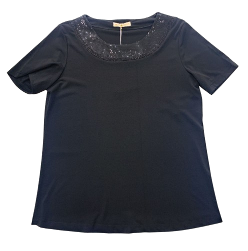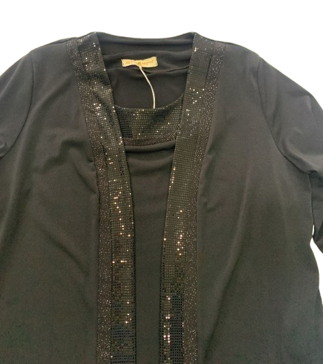 TWIN SET DONNA ELEGANTE CLARIN SHAVIEN IN JERSEY CON STRASS LINEA COMODA MAGLIA SOTTO MEZZA MANICA