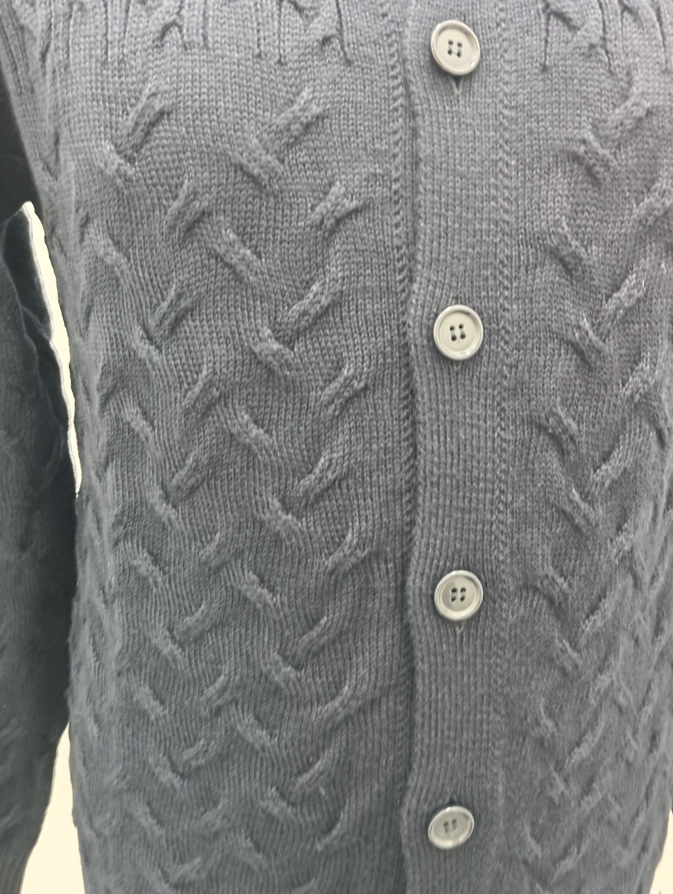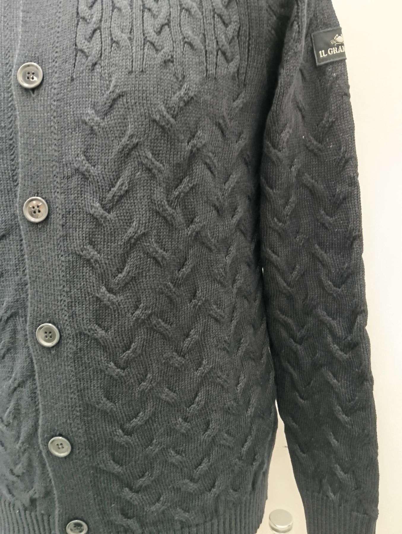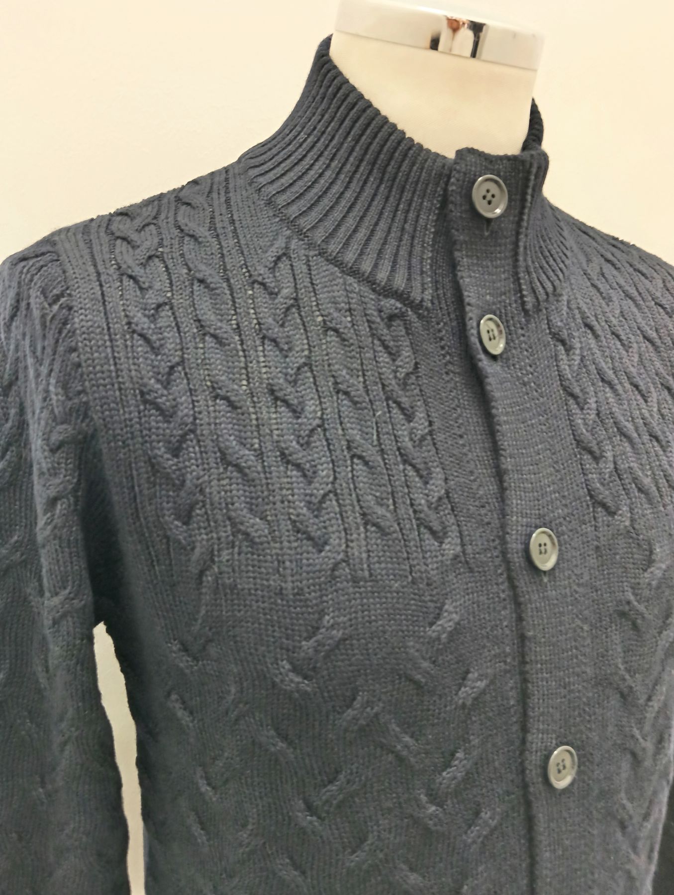 Cardigan uomo in lana con bottoni e collo lupo con lavorazione a trecce