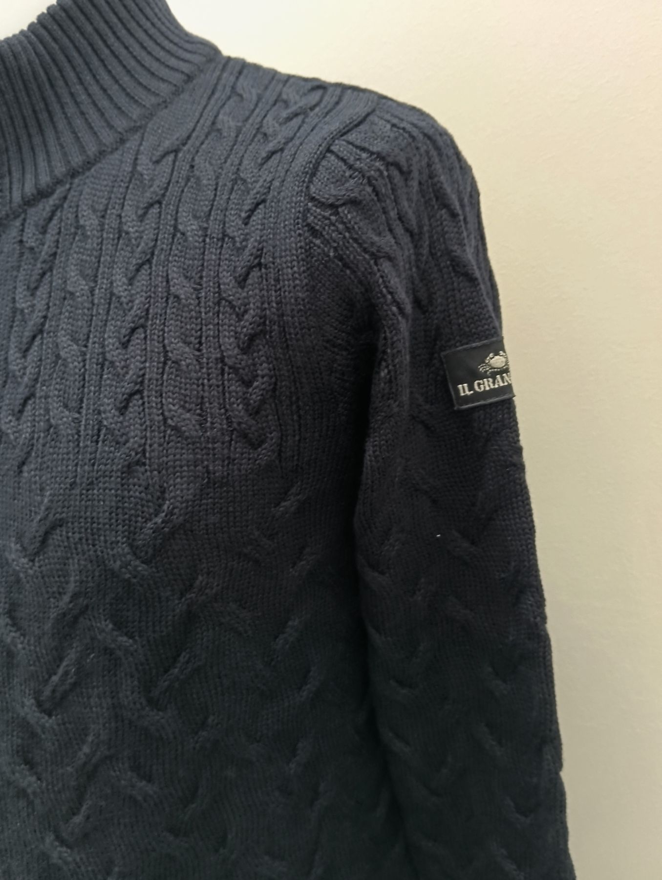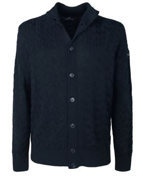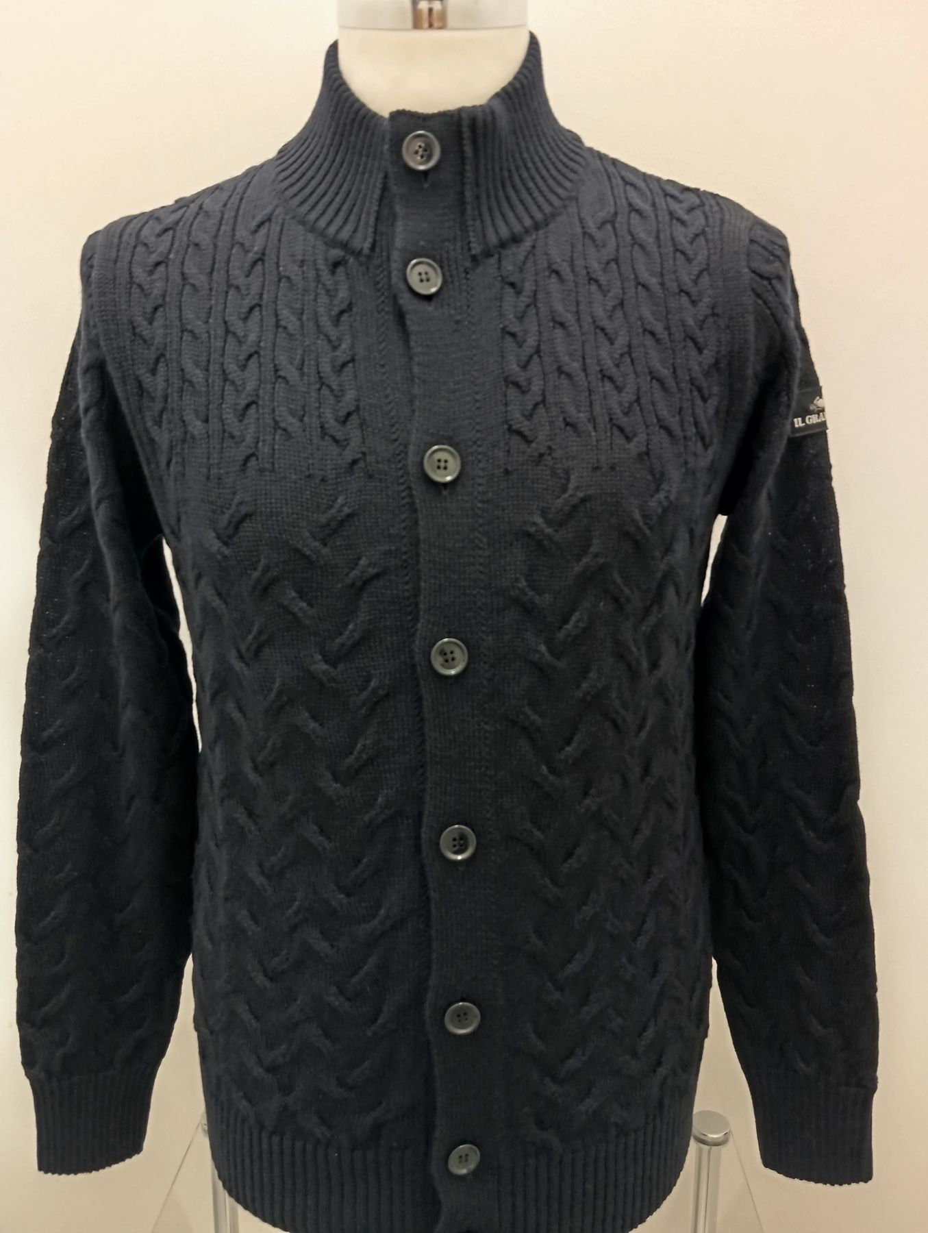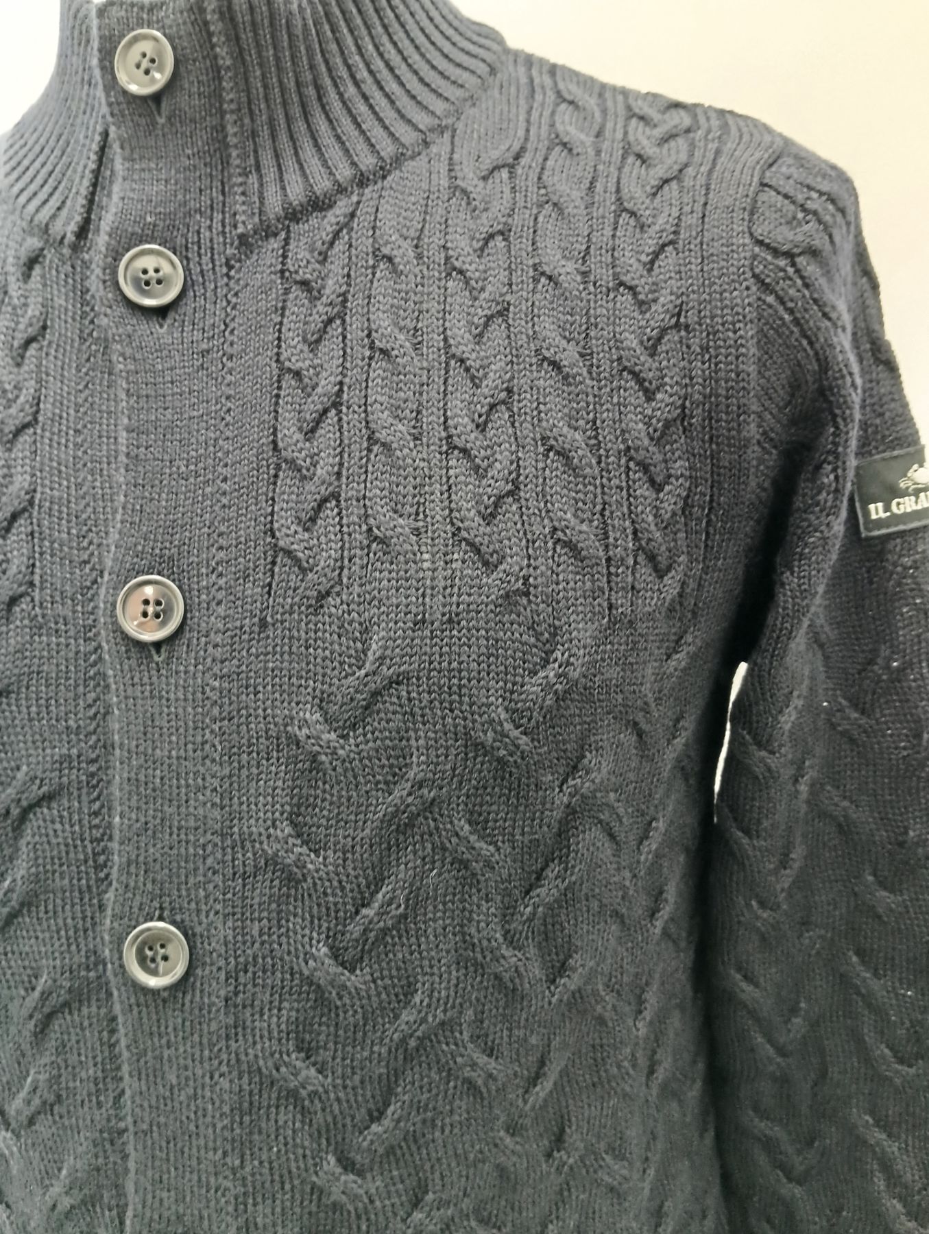 Cardigan uomo in lana con bottoni e collo lupo con lavorazione a trecce